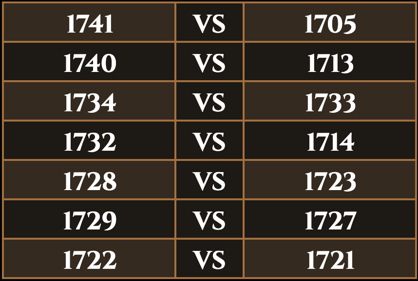 1697, 1698, 1699,1700,1701,1702,1703,1706, & 1707